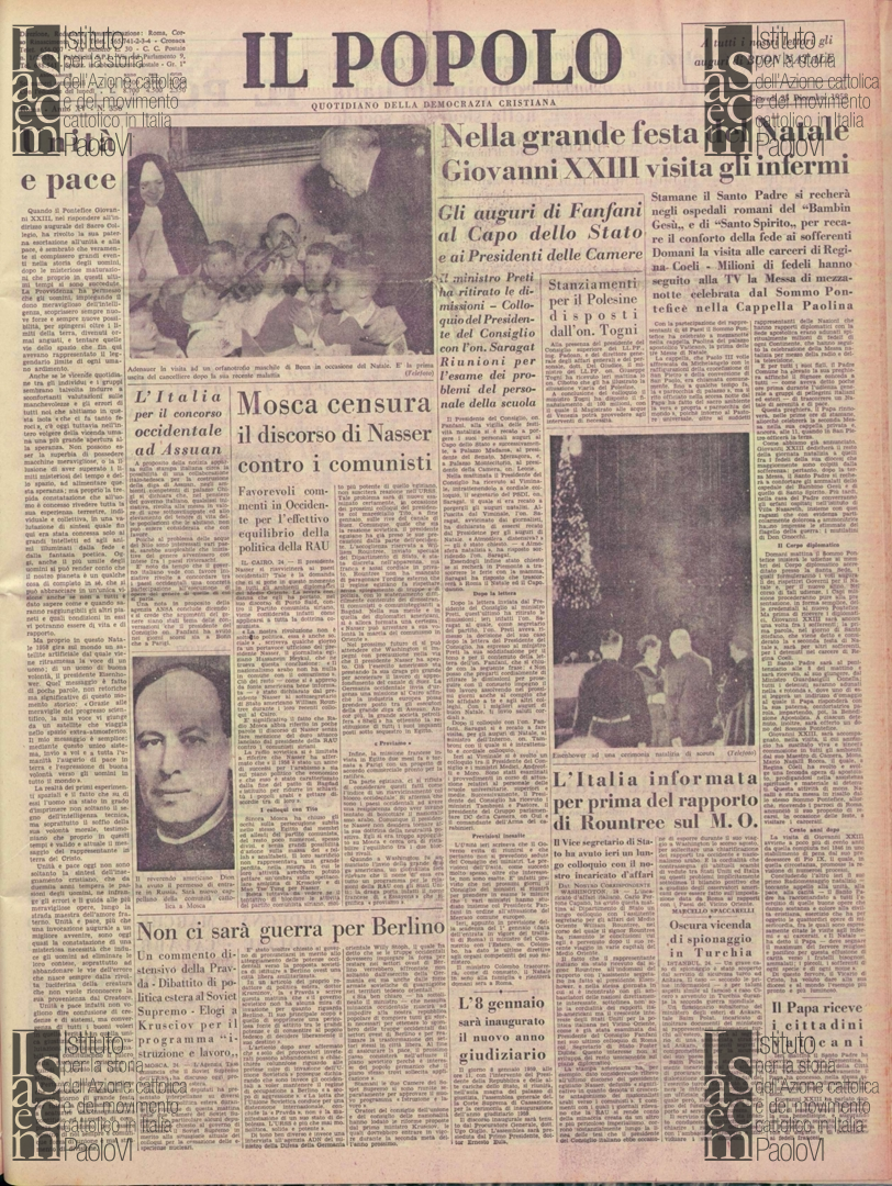 Nella grande festa del Natale Giovanni XXIII visita gli infermi