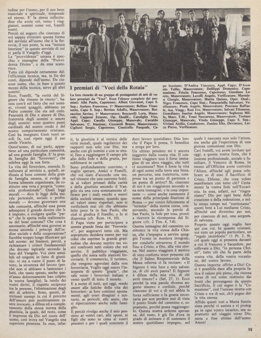 Articolo di "Voci della rotaia" sugli eventi documentati dal Cinegiornale n.133 della Cinedocumenti FS