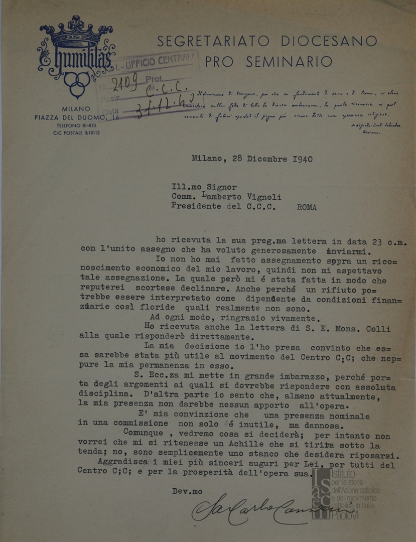 | Soggetto conservatore | ISACEM - Istituto per la storia dell'Azione cattolica e del movimento cattolico in Italia Paolo VI |