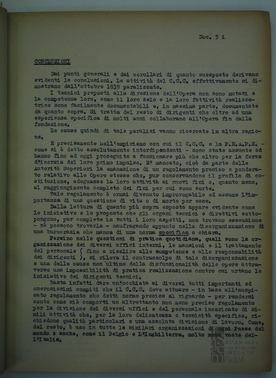 Resoconto conclusivo sulle criticità e le disfunzionalità del Centro. Dattiloscritto
