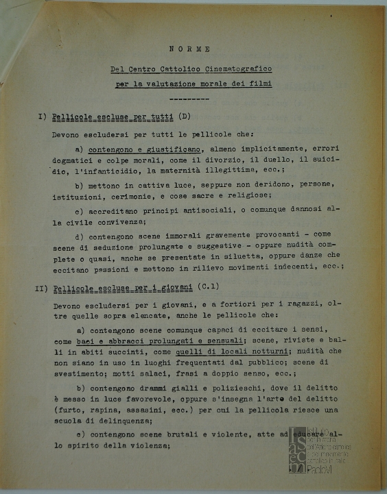 "Norme del Centro Cattolico Cinematografico per la valutazione morale dei film"