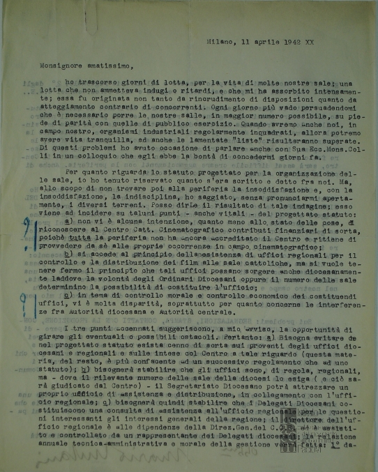 Lettera di Mario Milani, direttore del Consorzio per il cinema educativo - CCE, a destinatario non indicato