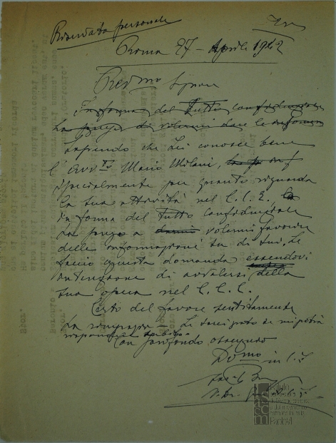 | Segnatura | Fondo Presidenza Generale, Serie XV, busta 2, fascicolo 6 |