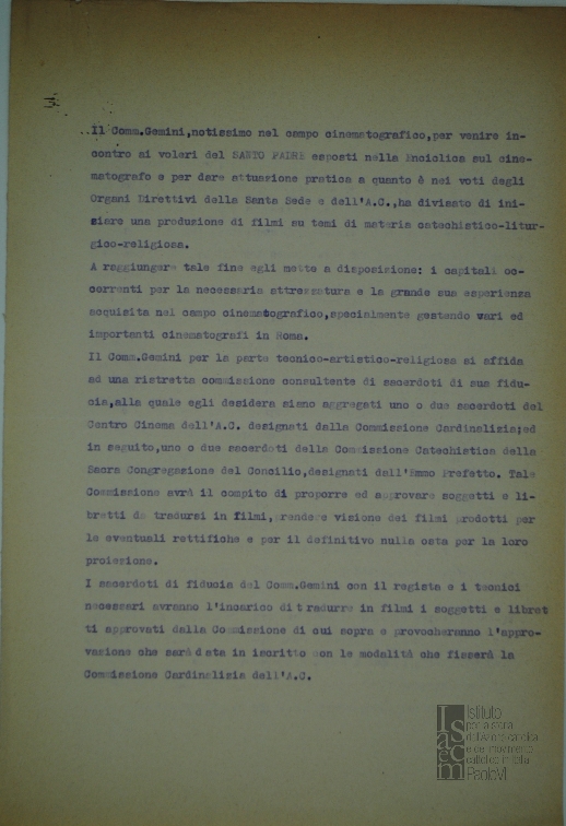 Costituzione di una società produttrice di film a carattere catechistico, liturgico e religioso