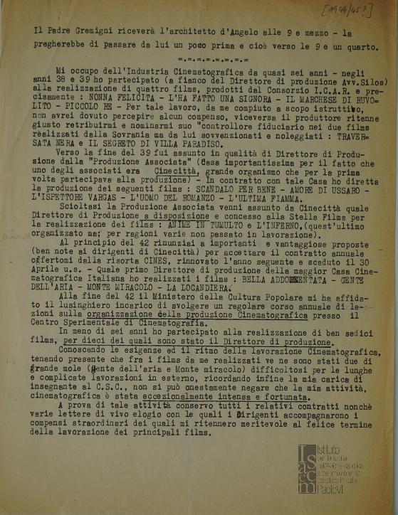| Segnatura | Fondo Presidenza Generale, Serie XV, busta 3, fascicolo 1 |