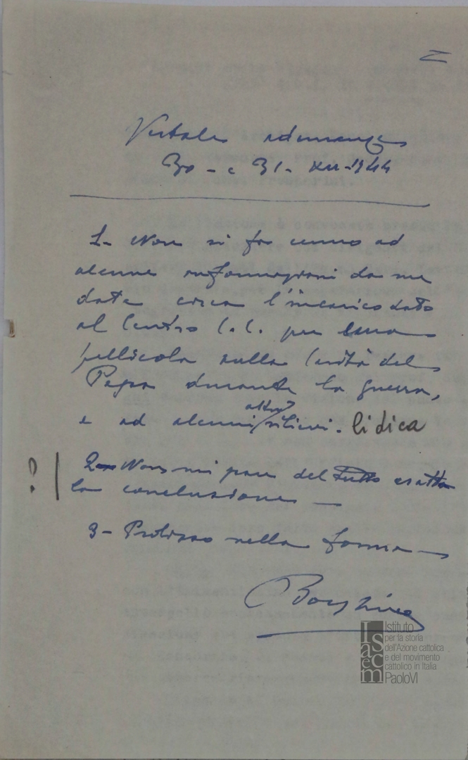 Verbale dell'adunanza del 1944, a cura di mons. Giuseppe Borghino