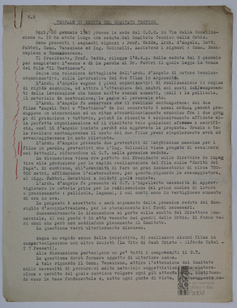 "Verbale della seduta del Comitato tecnico. N. 2"