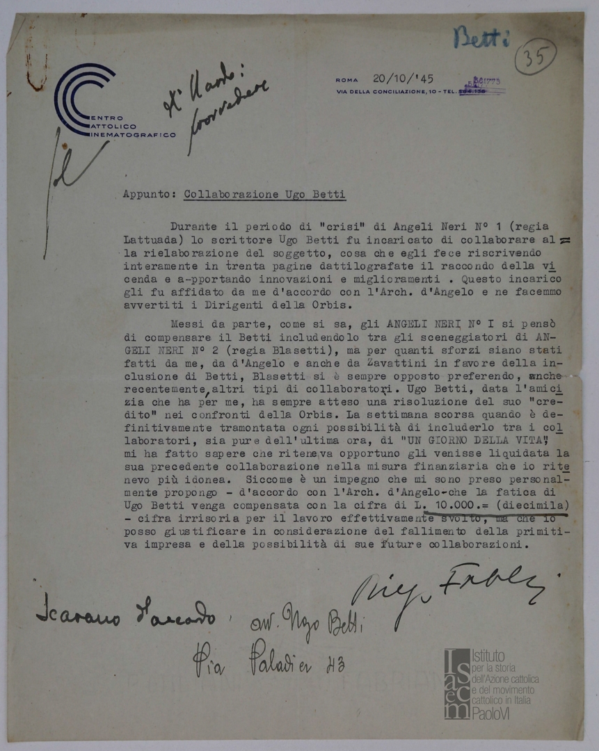"Appunto: collaborazione Ugo Betti", di Diego Fabbri