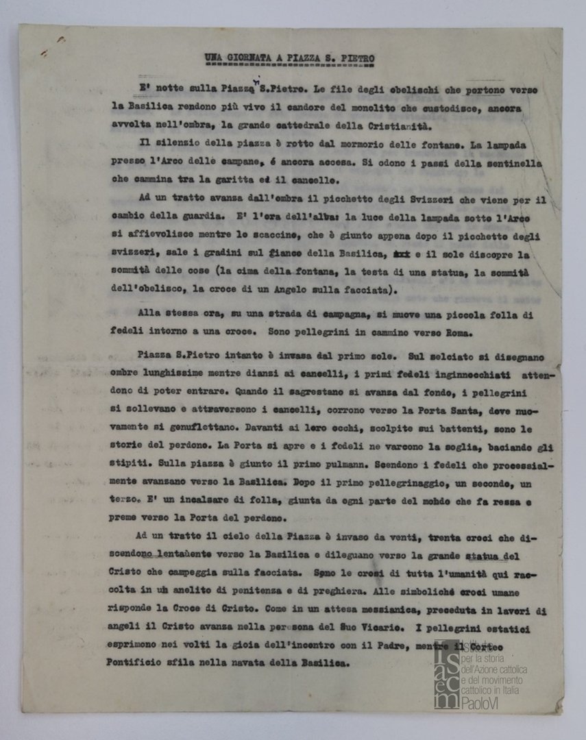 "'Desiderio di Roma' (una giornata a San Pietro). Soggetto originale di Agostino Ghilardi"