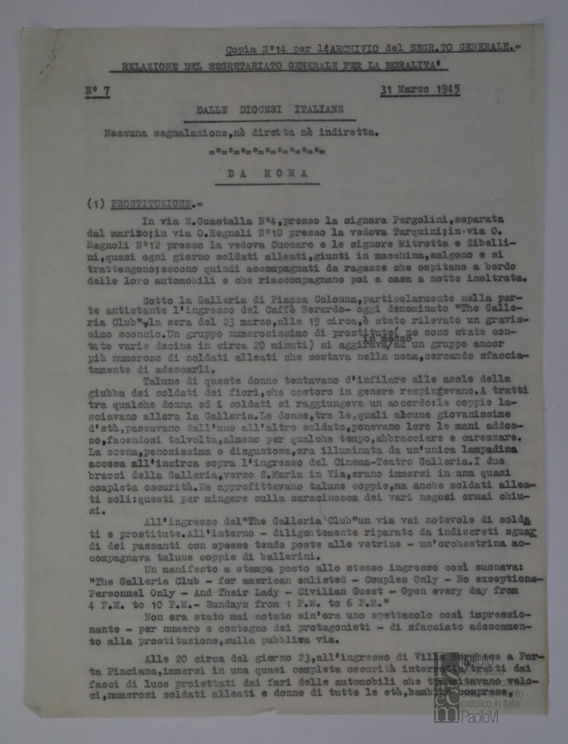 "Relazione del Segretariato Generale per la Moralità. Nr. 7"