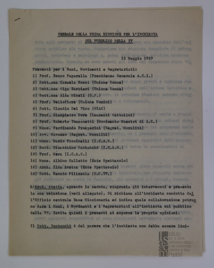 | Soggetto conservatore | ISACEM - Istituto per la storia dell'Azione cattolica e del movimento cattolico in Italia Paolo VI |
