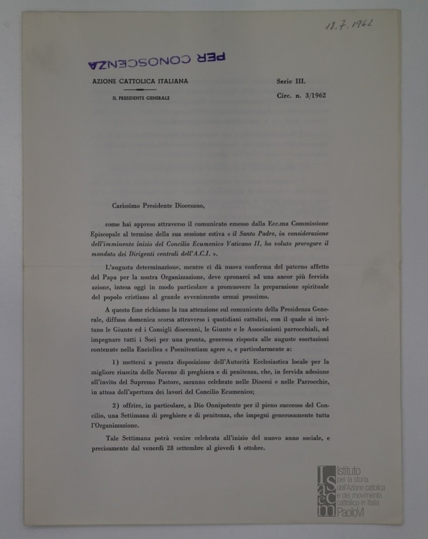Destinatario | Presidenti diocesani di ACI (Azione Cattolica Italiana) |