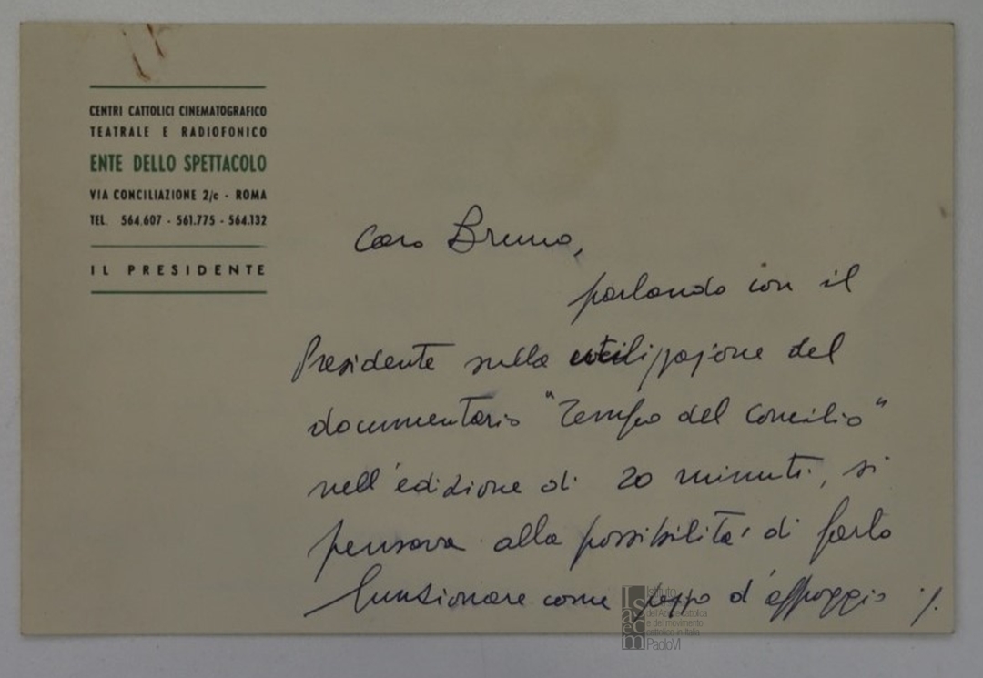 Osservazioni in merito alla diffusione del cortometraggio "Tempo del Concilio". Dattiloscritto
