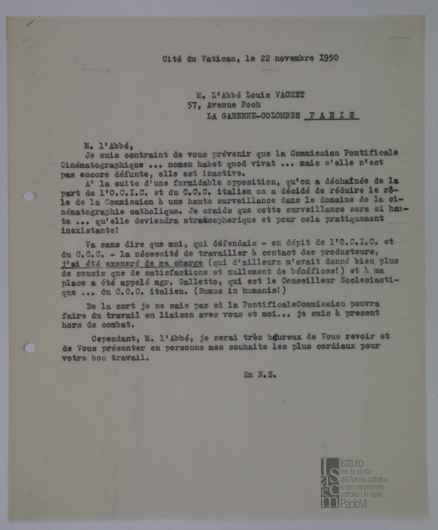 Osservazioni sul ruolo della Pontificia commissione per la cinematografia didattica e religiosa e sui suoi rapporti con l'OCIC e con il CCC. Dattiloscritto