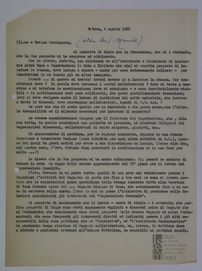 | Soggetto conservatore | ISACEM - Istituto per la storia dell'Azione cattolica e del movimento cattolico in Italia Paolo VI |