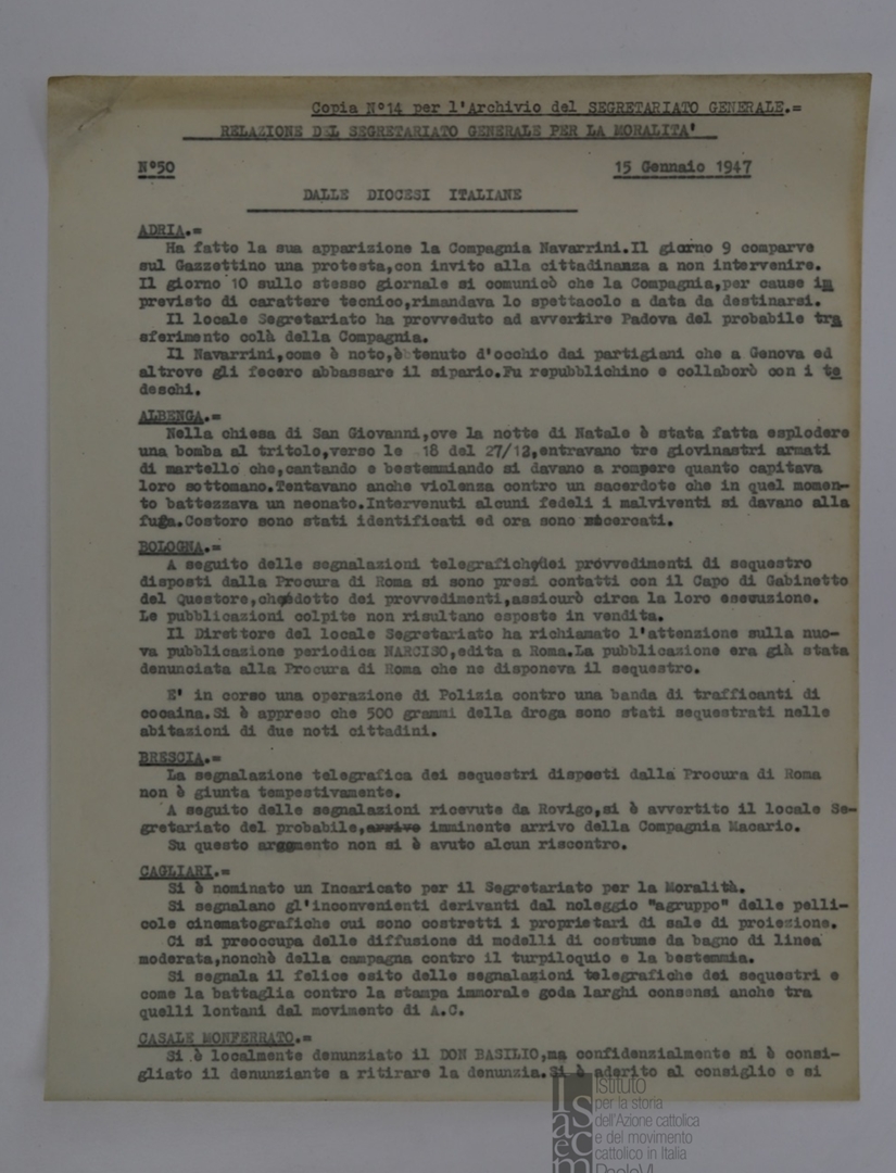 "Relazione del Segretariato Generale per la Moralità. Nr. 50"