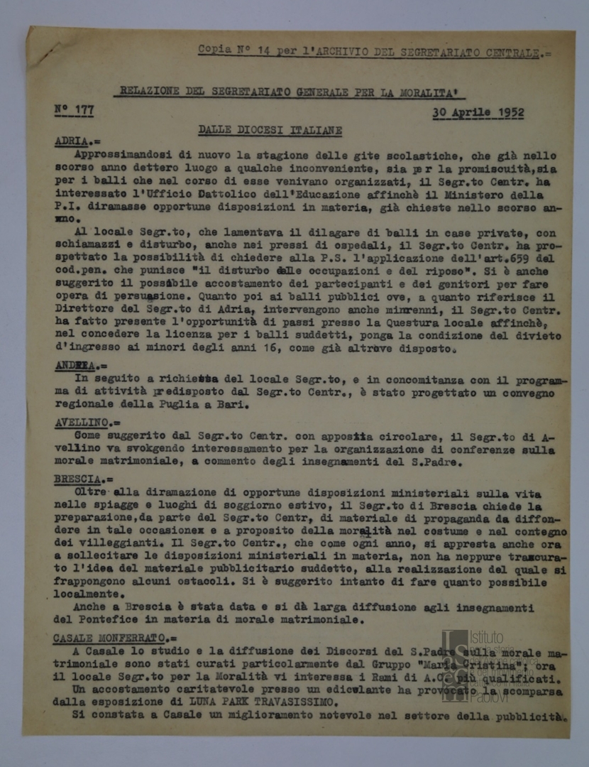 "Relazione del Segretariato Generale per la Moralità. Nr. 177"