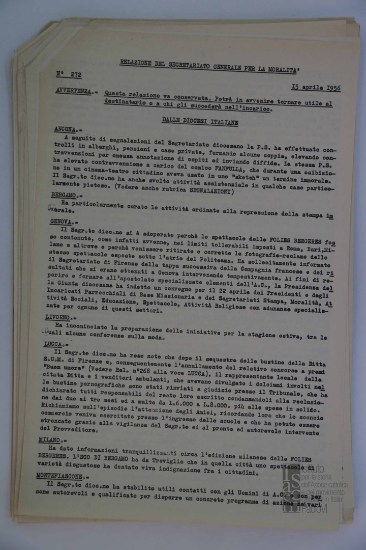 "Relazione del Segretariato Generale per la Moralità. Nr. 272"