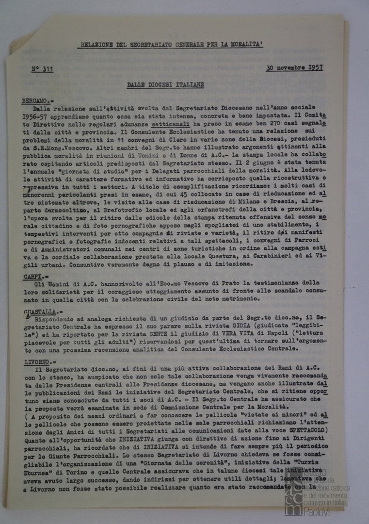 "Relazione del Segretariato Generale per la Moralità. Nr. 311"