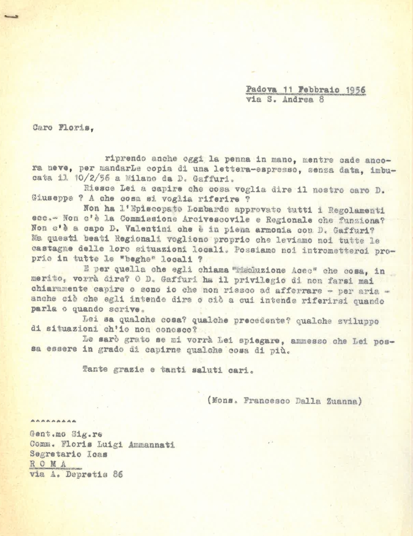 Lettera di mons. Francesco Dalla Zuanna, presidente ACEC, a Floris Luigi Ammannati, segretario ICAS