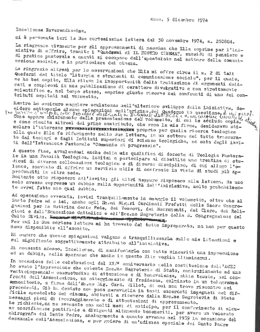 Lettera di mons. Luigi M. Pignatiello, delegato diocesano e regionale dell'ACEC, alla Segreteria di Stato della Città del Vaticano