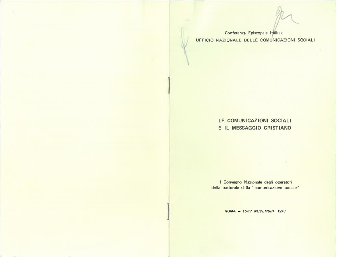 "Le comunicazioni sociali e il messaggio cristiano". II Convegno nazionale degli operatori della pastorale della comunicazione sociale. Roma, 15-17 novembre 1973