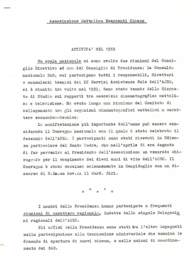 "Associazione cattolica esercenti cinema.Attività nel 1959"