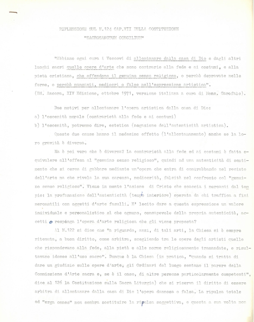 "Riflessioni sul n. 124 cap. VII della costituzione Sacrosanctum Concilium", a cura di Silvano Battisti, segretario generale dell'ACEC