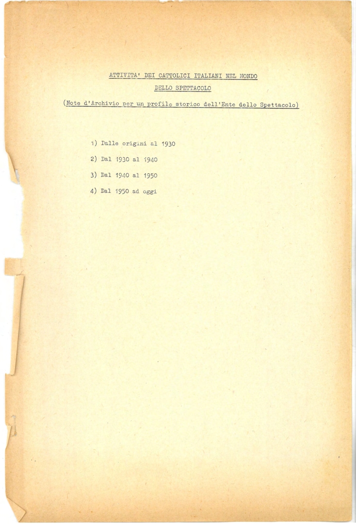 "Attività dei cattolici italiani nel mondo dello spettacolo"