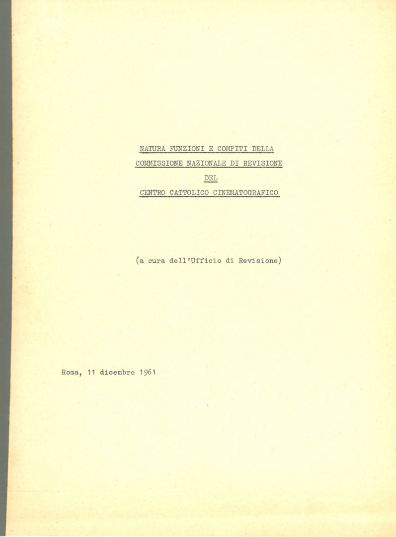 "Natura, funzioni e compiti della Commissione nazionale di revisione del Centro cattolico cinematografico", a cura dell'Ufficio di revisione