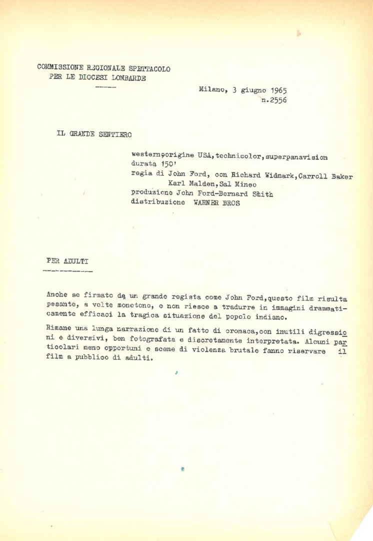 Classificazione di film, a cura della Commissione regionale spettacolo per le diocesi lombarde