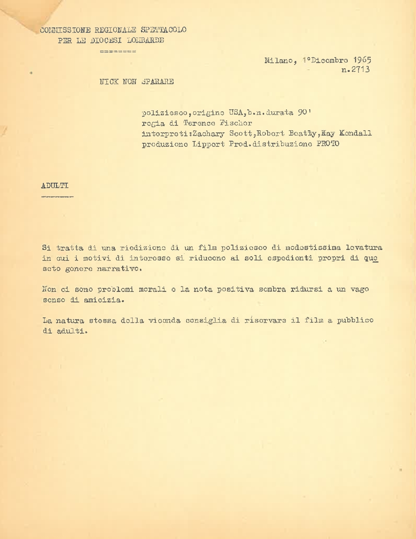 | Soggetto conservatore | ACEC - Associazione cattolica esercenti cinema |