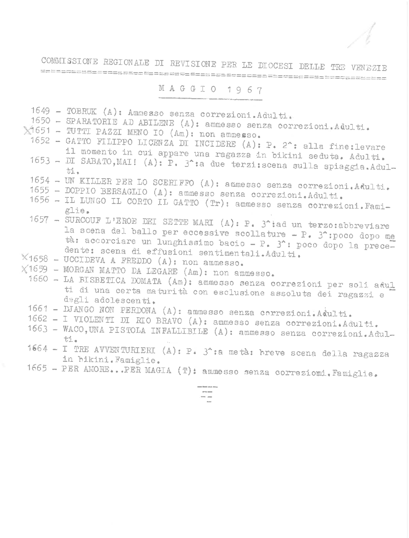 Classificazione di film, a cura della Commissione regionale di revisione per le diocesi delle Tre Venezie