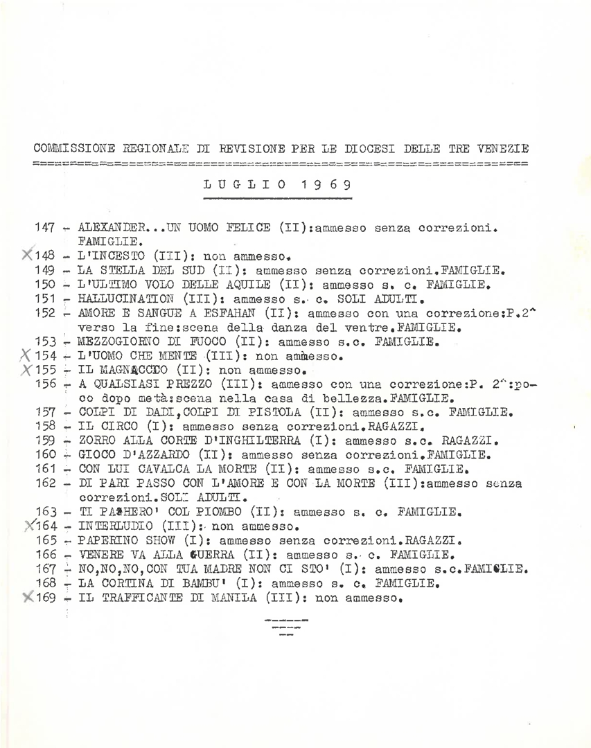 Classificazione di film, a cura della Commissione regionale di revisione per le diocesi delle Tre Venezie
