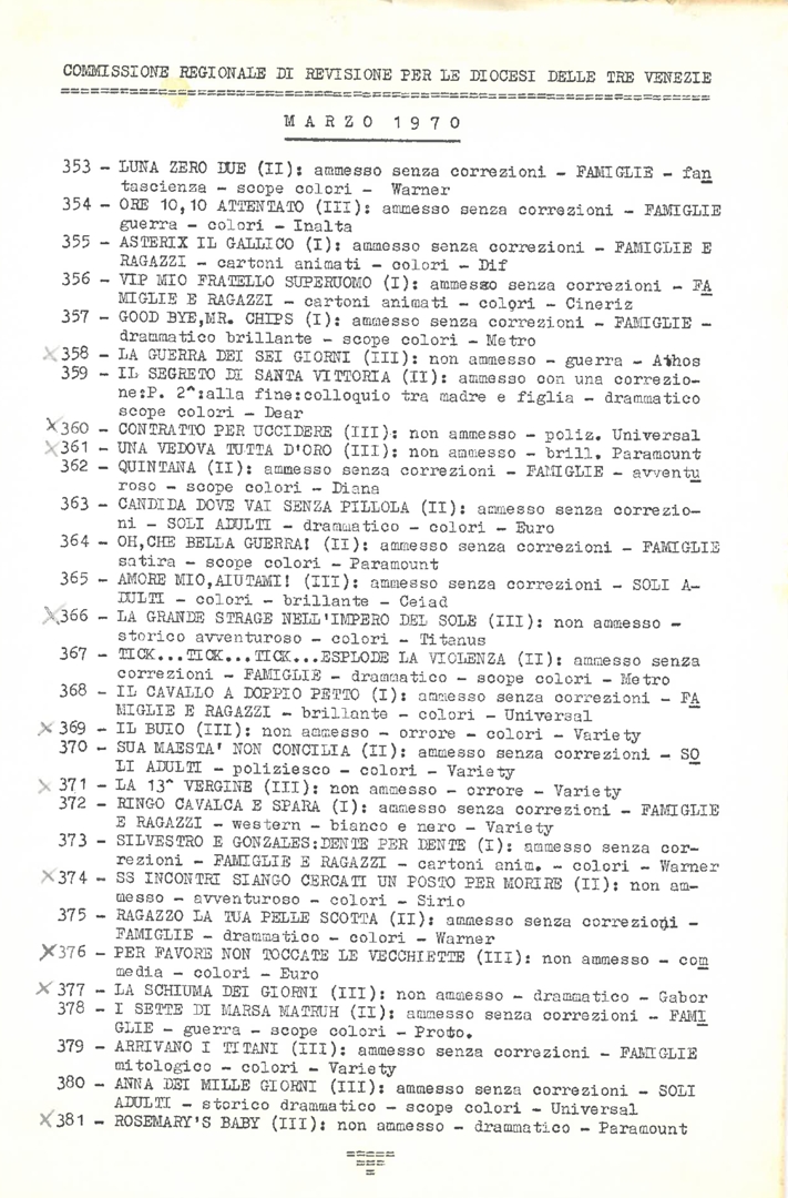 Classificazione di film, a cura della Commissione regionale di revisione per le diocesi delle Tre Venezie
