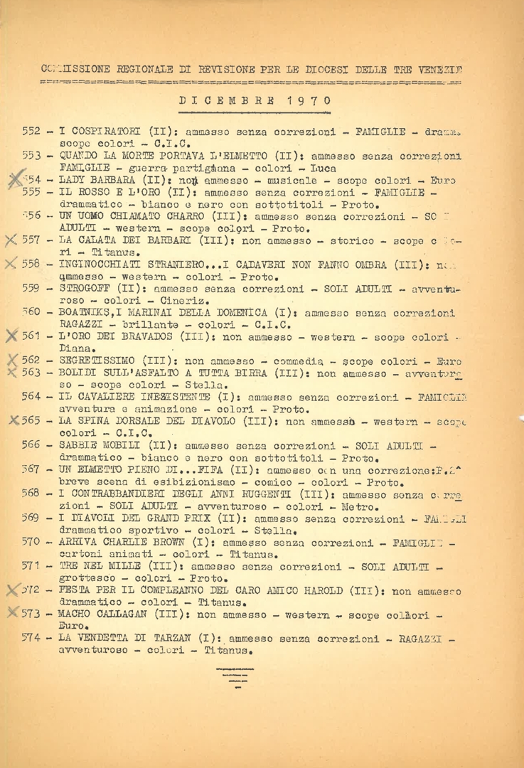 Classificazione di film, a cura della Commissione regionale di revisione per le diocesi delle Tre Venezie