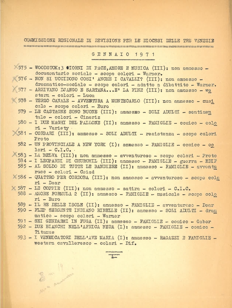 Classificazione di film, a cura della Commissione regionale di revisione per le diocesi delle Tre Venezie