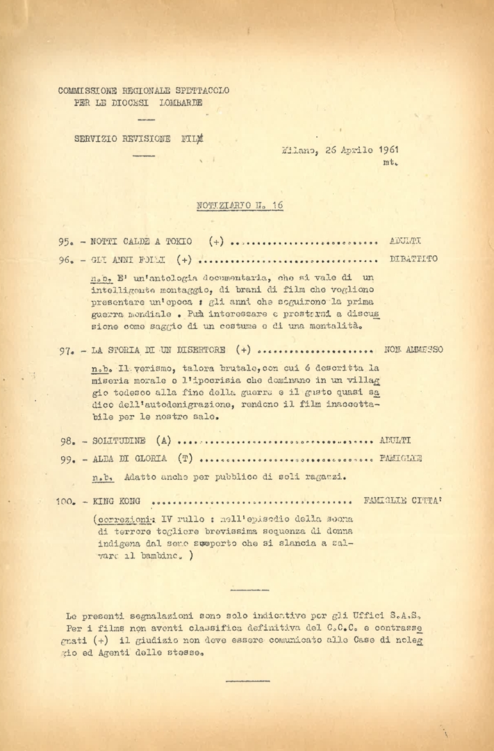 Commissione regionale spettacolo per le diocesi lombarde. Servizio revisione film, Notiziario n. 16