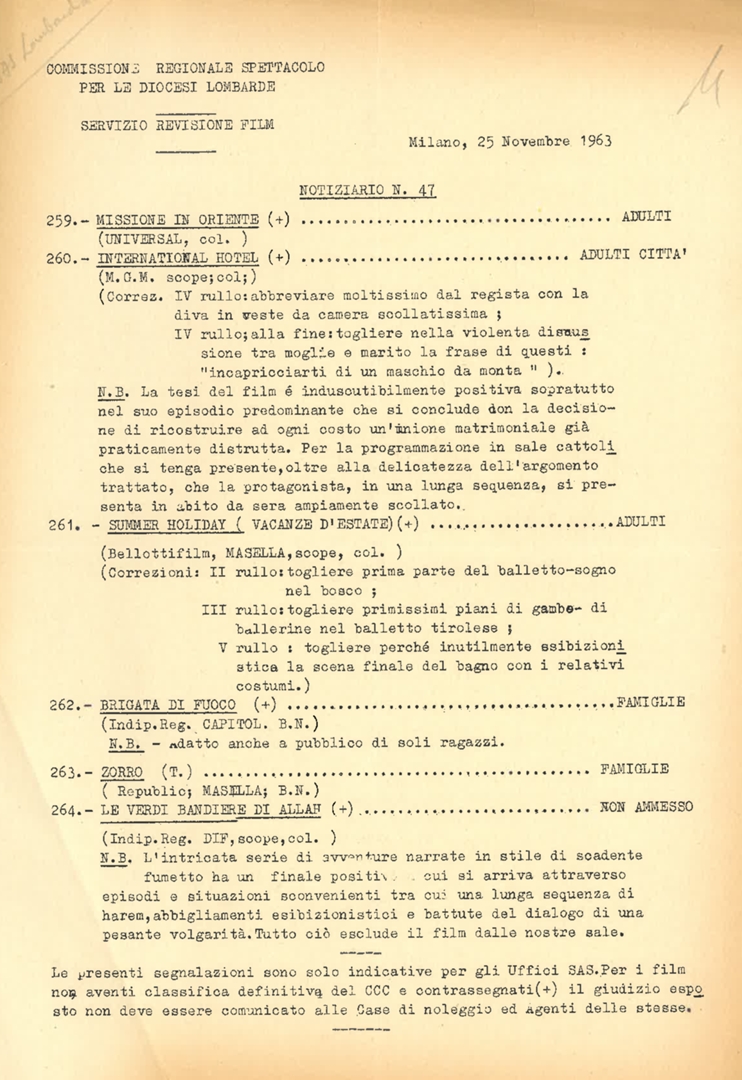 Commissione regionale spettacolo per le diocesi lombarde. Servizio revisione film, Notiziario n. 47