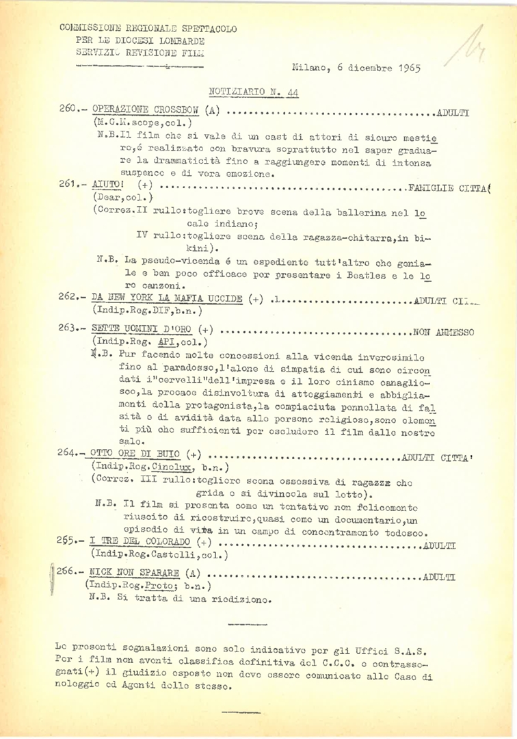 Commissione regionale spettacolo per le diocesi lombarde. Servizio revisione film, Notiziario n. 44