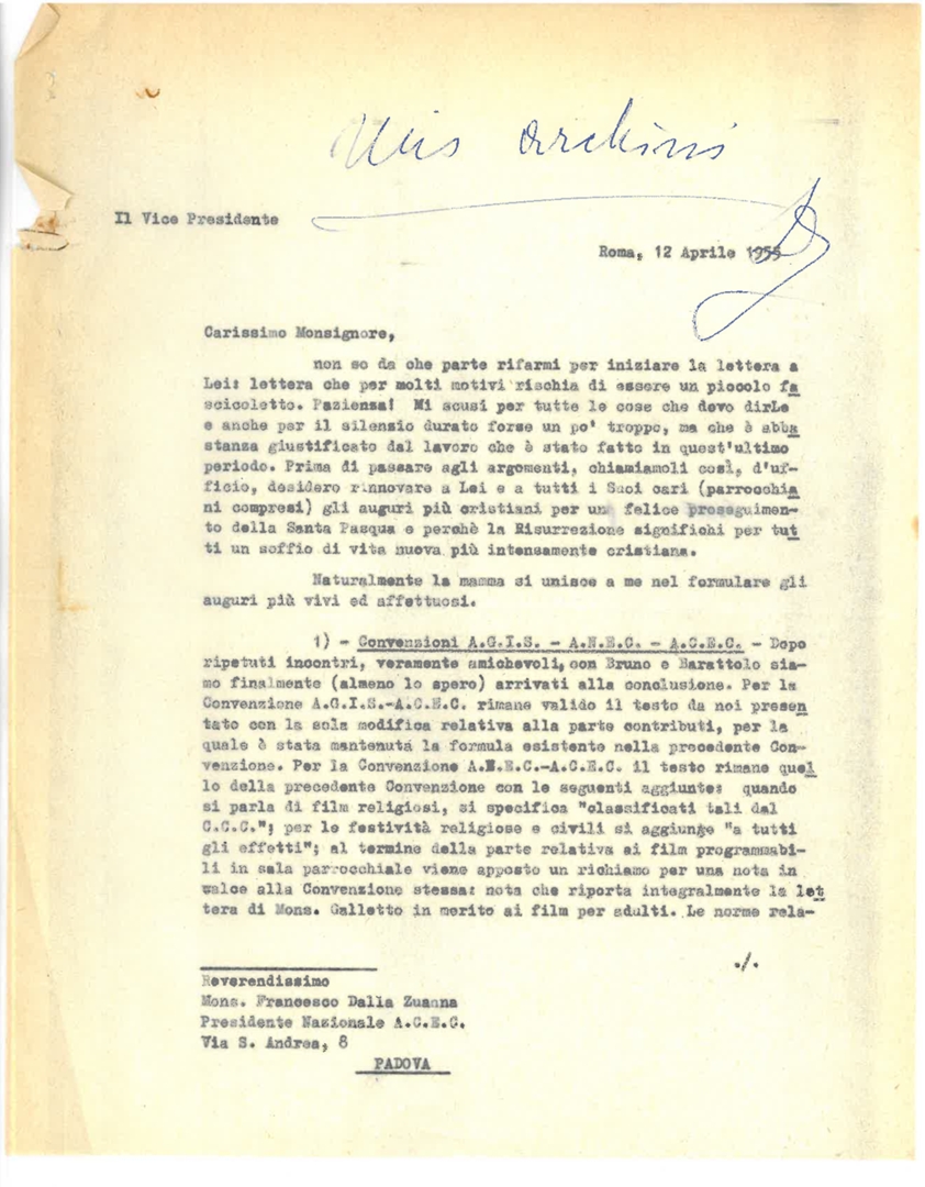 Lettera di Floris Luigi Ammannati, vice presidente dell'ACEC, a mons. Francesco Dalla Zuanna, presidente dell'ACEC