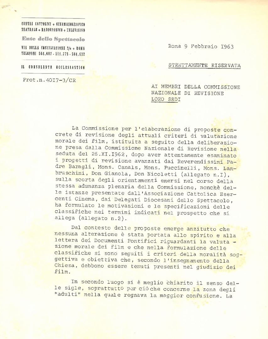 Con lettera di trasmissione di mons. Francesco Angelicchio ai membri della Commissione nazionale di revisione. Dattiloscritto