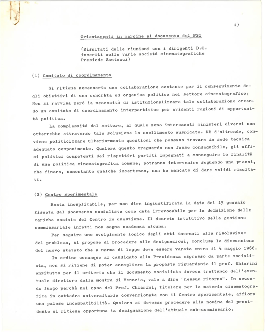 Risultati delle riunioni con i dirigenti DC inseriti nelle varie società cinematografiche. Dattiloscritto