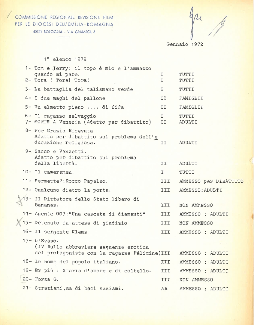 Classificazione di film, a cura della Commissione regionale di revisione film per le diocesi dell'Emilia-Romagna