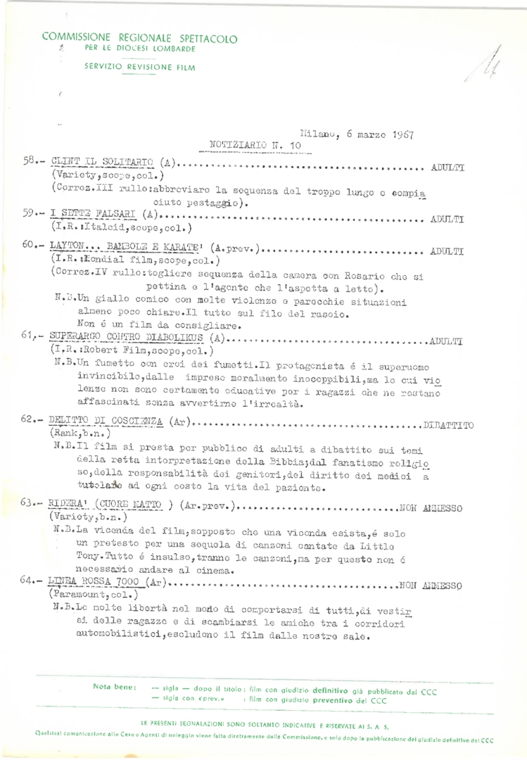 Elenco con i titoli dei film soggetti a revisione da parte della Commissione e relativo giudizio