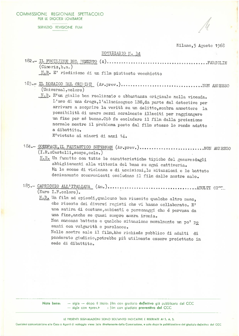 Commissione regionale spettacolo per le diocesi lombarde. Servizio revisione film. Notiziario, n. 34