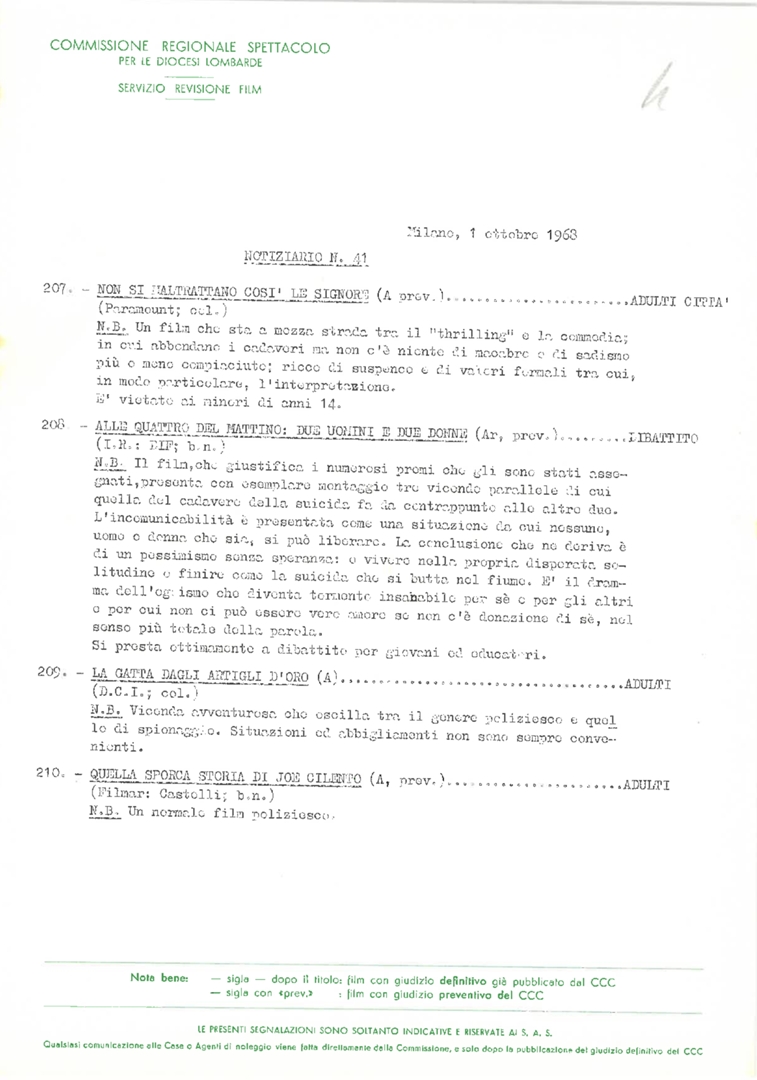 Commissione regionale spettacolo per le diocesi lombarde. Servizio revisione film. Notiziario, nn. 41-51