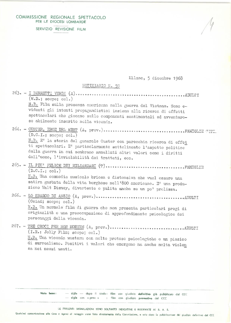 Commissione regionale spettacolo per le diocesi lombarde. Servizio revisione film. Notiziario, nn. 59-65