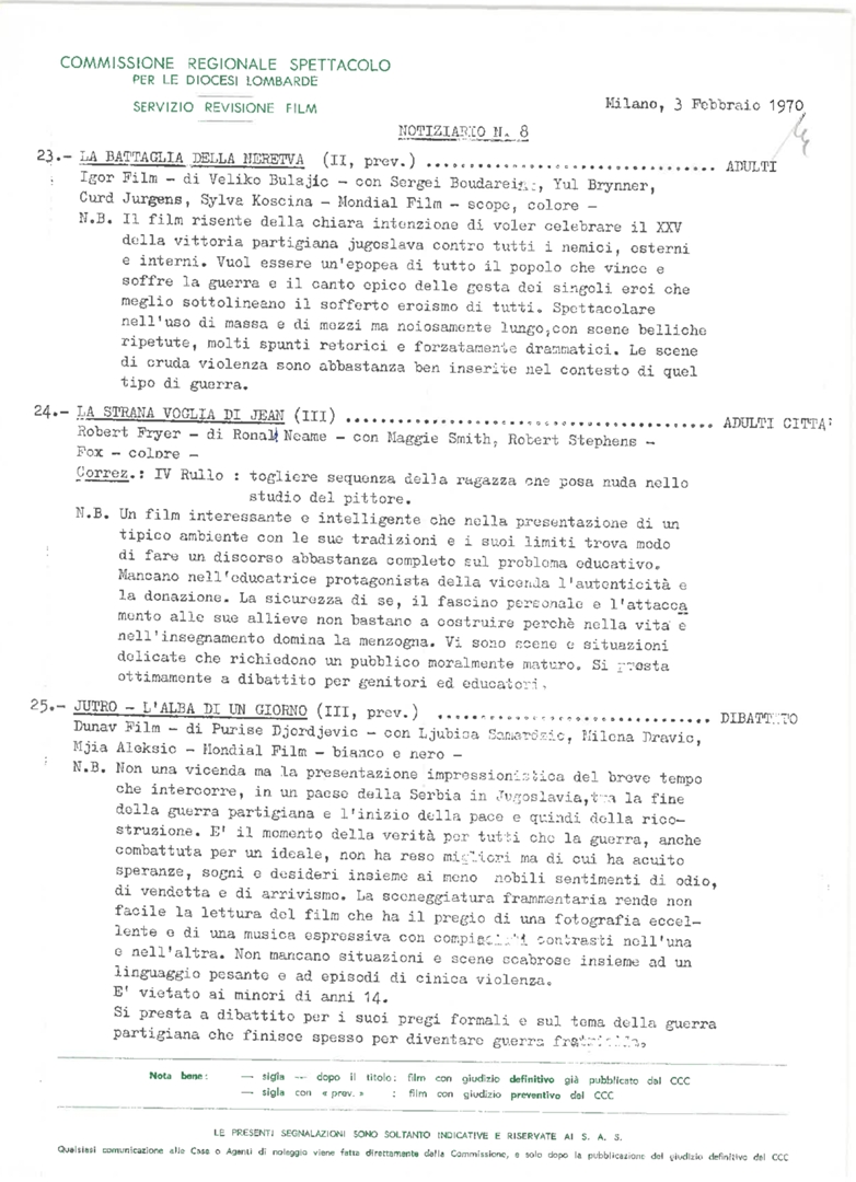 Commissione regionale spettacolo per le diocesi lombarde. Servizio revisione film. Notiziario, nn. 8-17