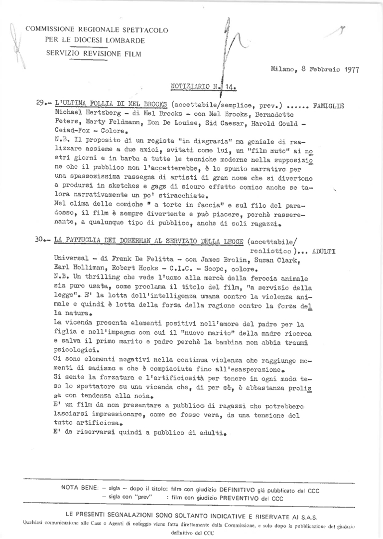 Commissione regionale spettacolo per le diocesi lombarde. Servizio revisione film. Notiziario, nn. 14-23